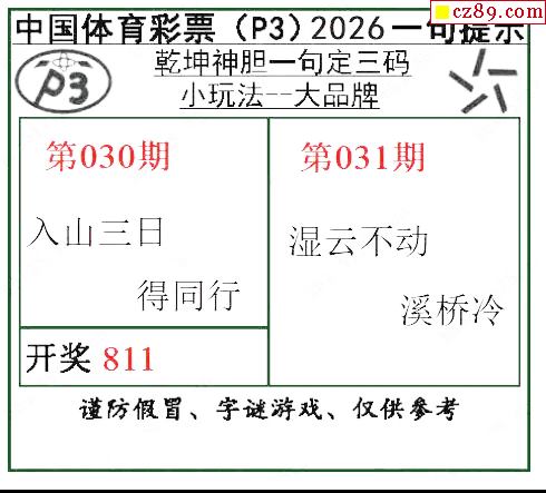 乾坤一句定三码26年031期P3图谜