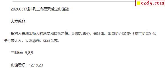 彩票天后p3定和值谜26年031期