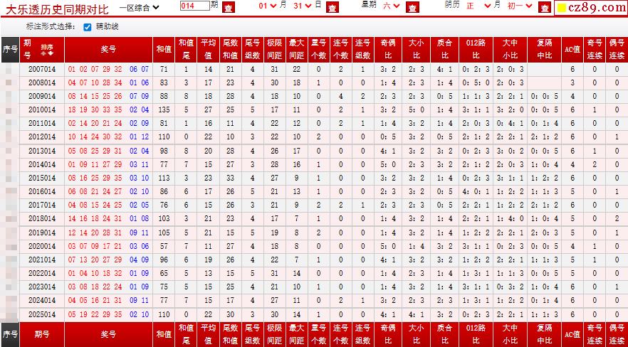 014期大乐透历史同期对比图