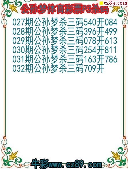 26年032期公孙梦体育彩票P3杀码图