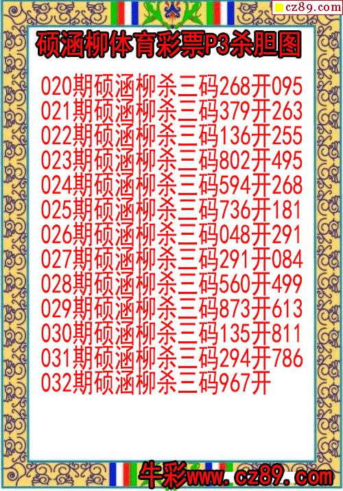 26年032期常君体彩排3杀码图