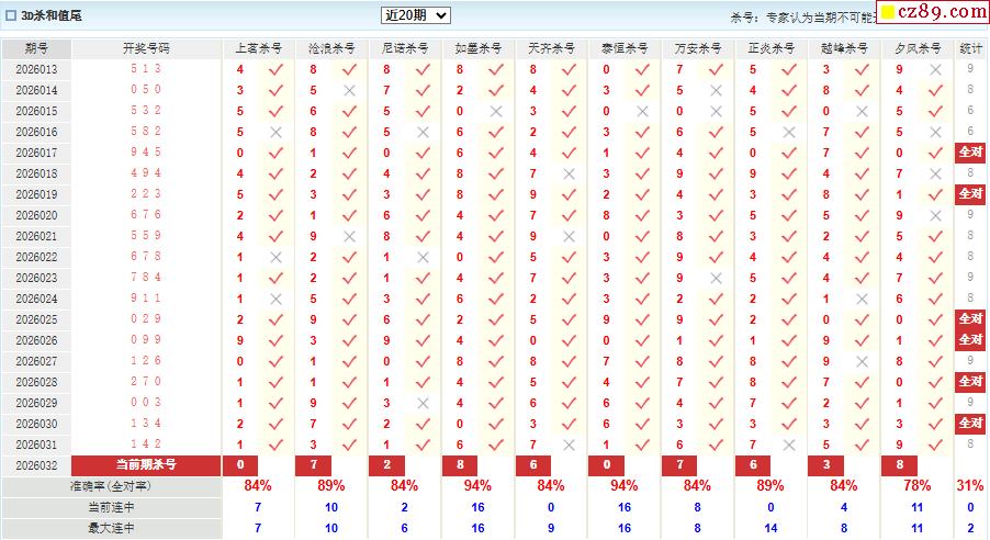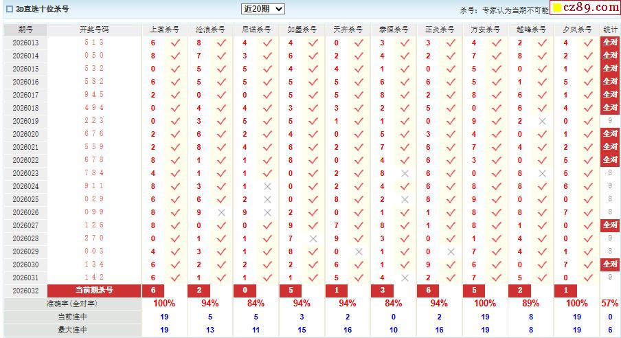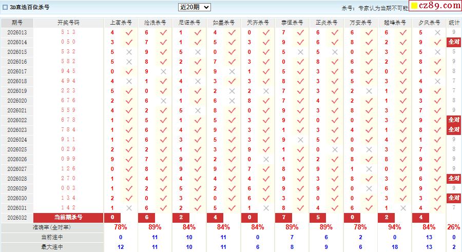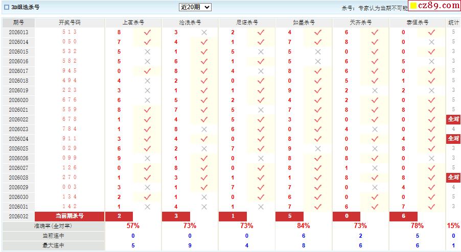 26年032期彩宝贝专家福彩3D杀号定码图表