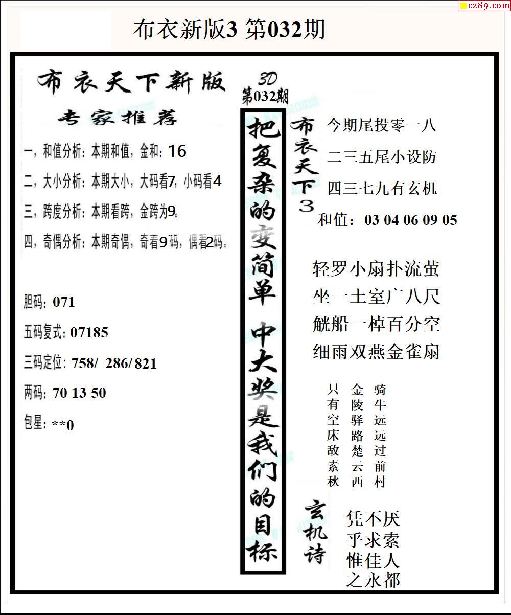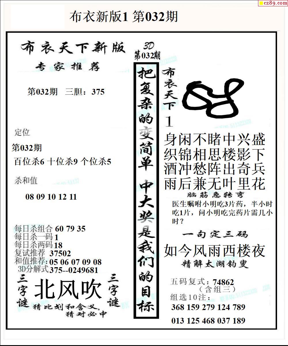 布衣天下新版2026032期3d图谜