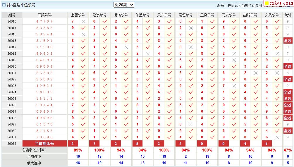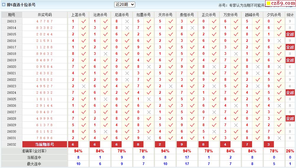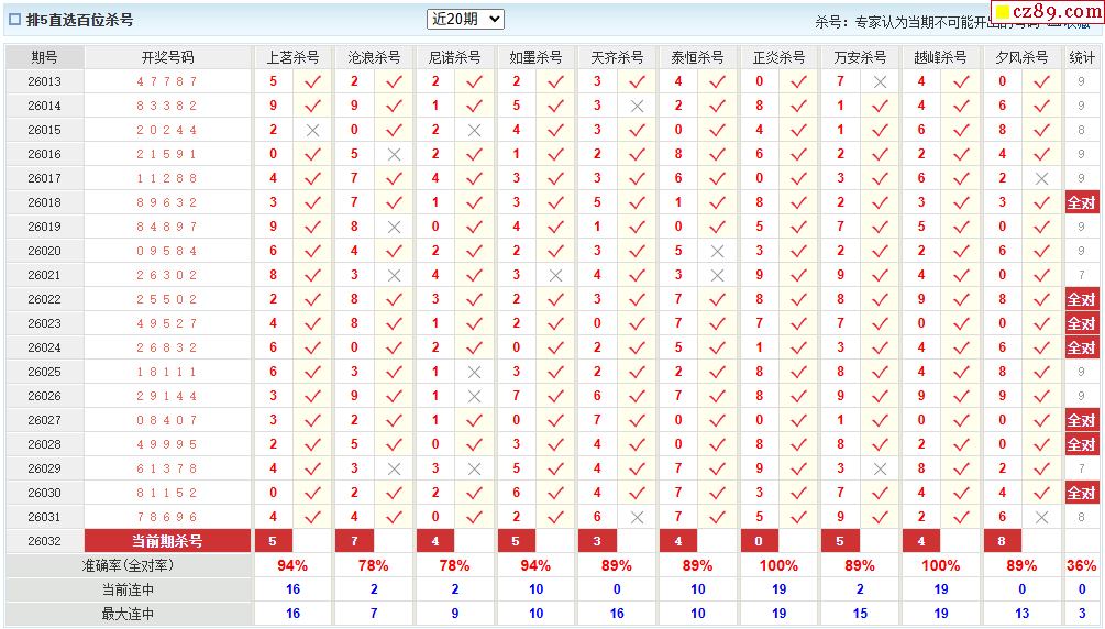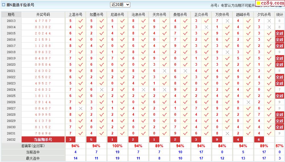 26年032期彩宝贝专家体彩P3杀号定码图表