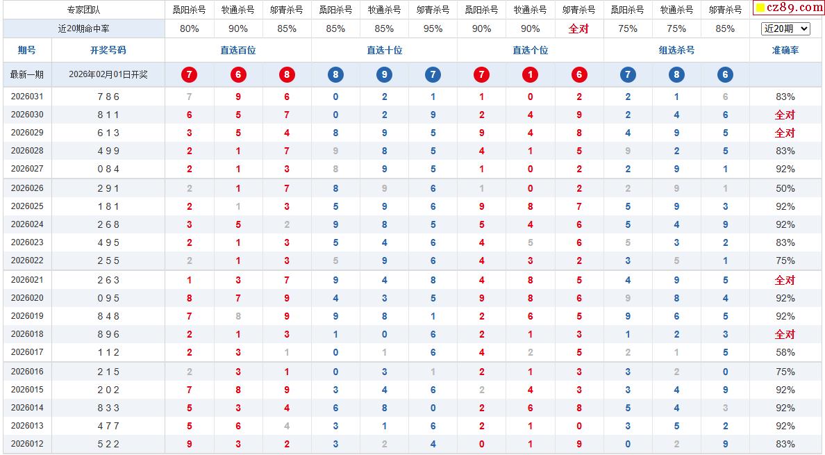 26年032期彩宝贝专家体彩P3杀号定码图表