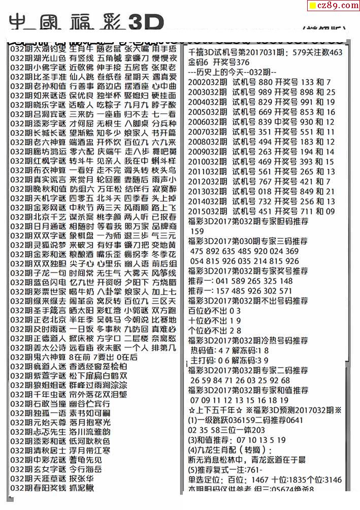 2026032期3D图谜汇总(九)