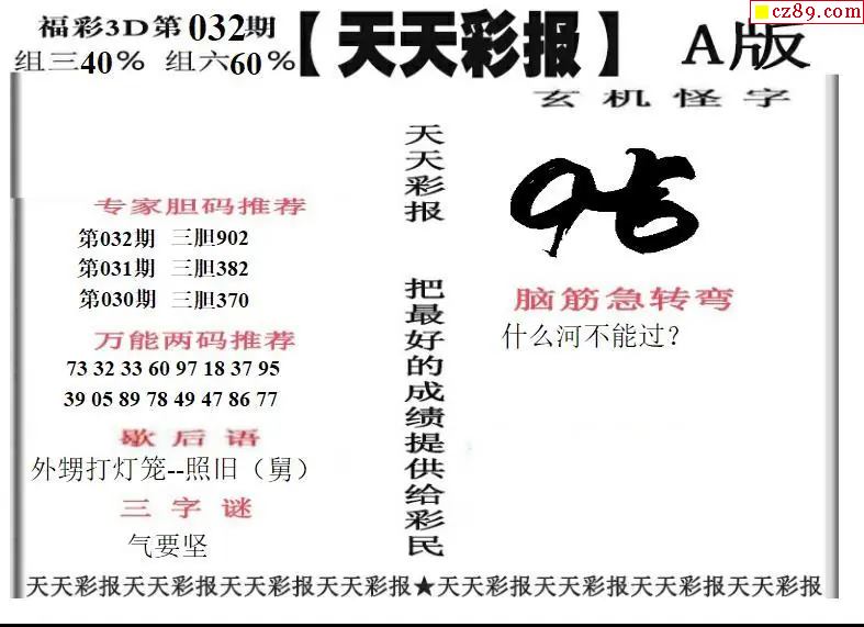 福彩3D2026032期天天彩报A版 天天彩报B版