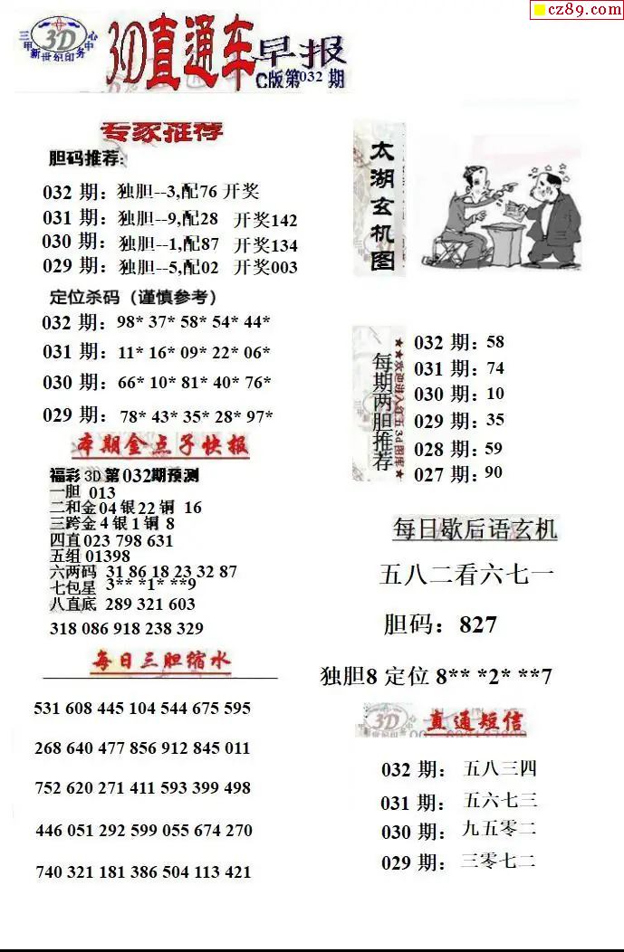 福彩3D2026032期直通车早报ABCD版