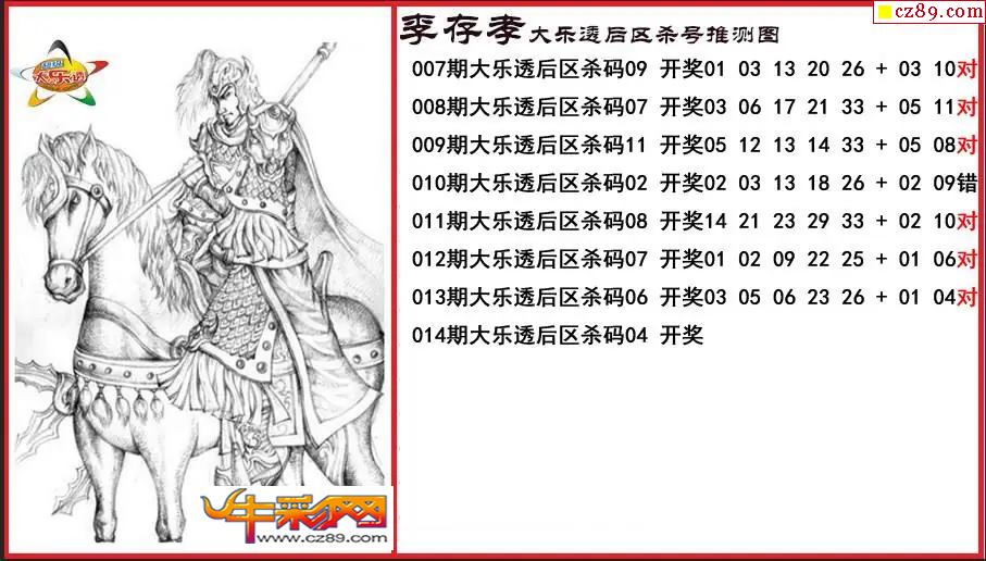 大乐透014期李存孝后区杀号推测图