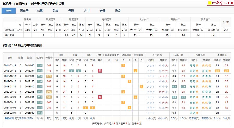26年032期福彩3d试机号114