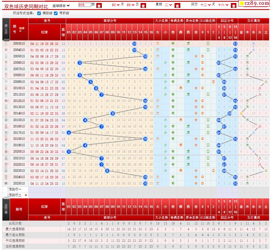 015期双色球历史同期对比图
