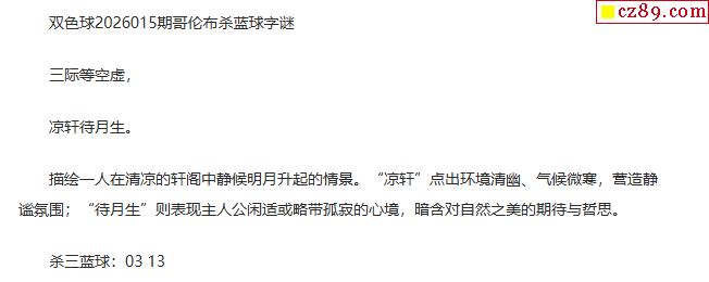 26年福彩双色球015期 哥伦布一句杀蓝球字谜