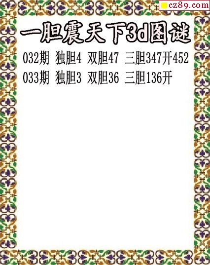 一胆震天下独胆2026033期3d图谜(原创)