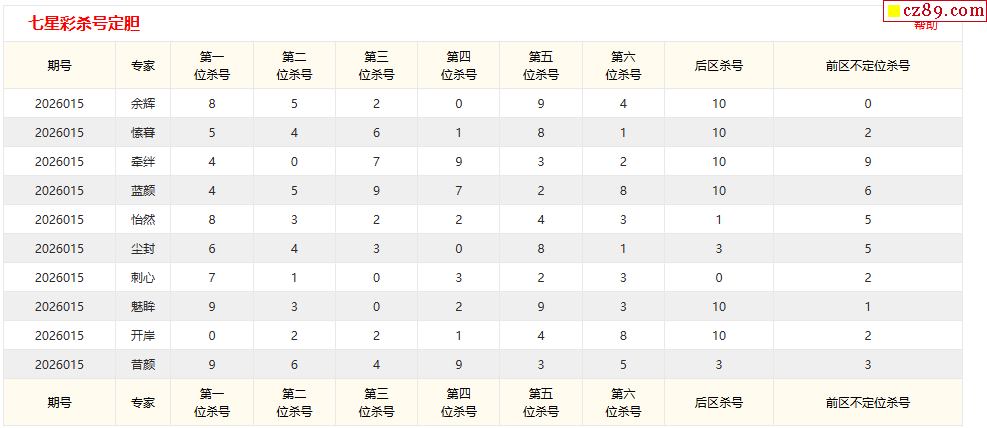 七星彩015期 澳客各路专家直选杀号预测推荐