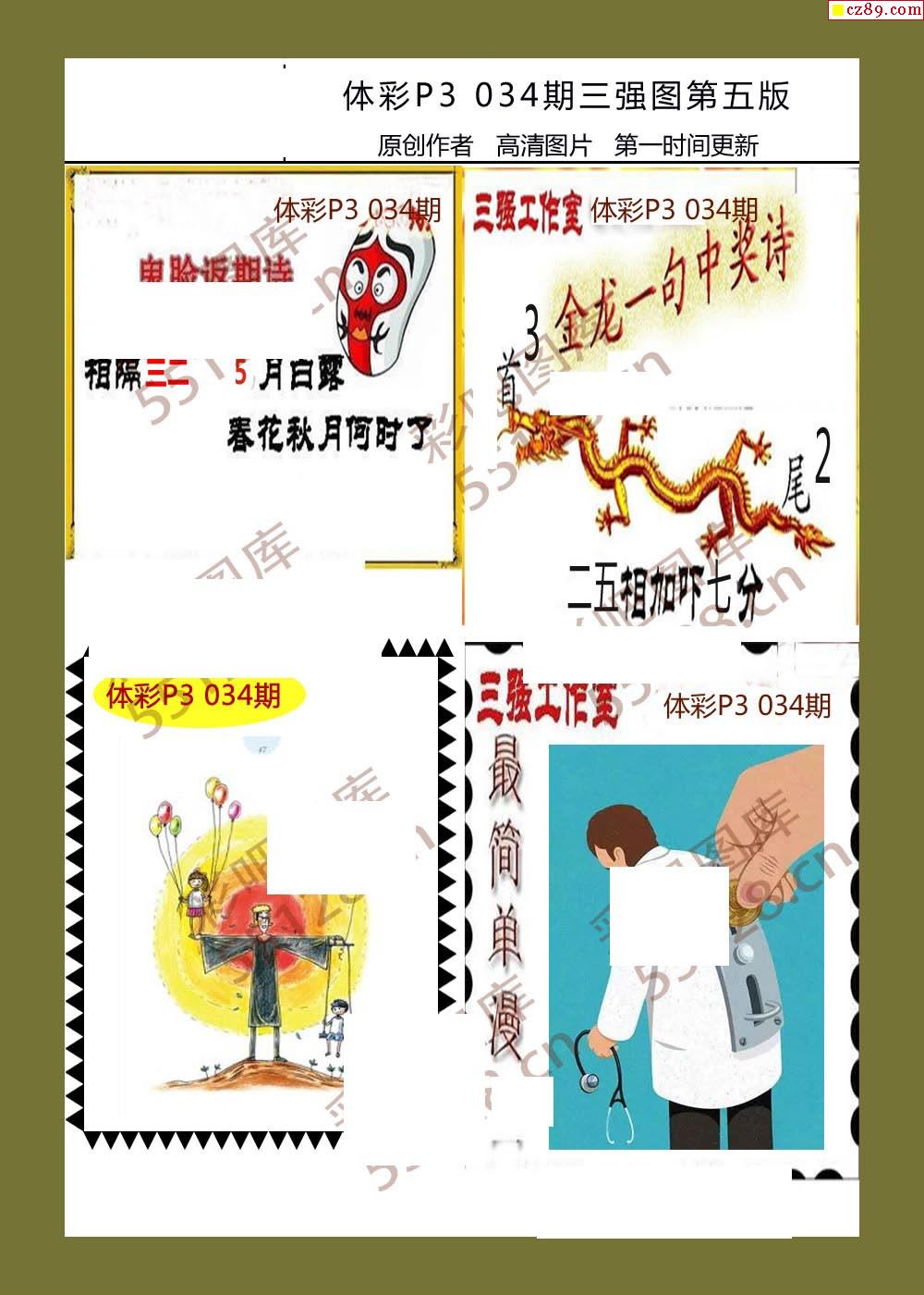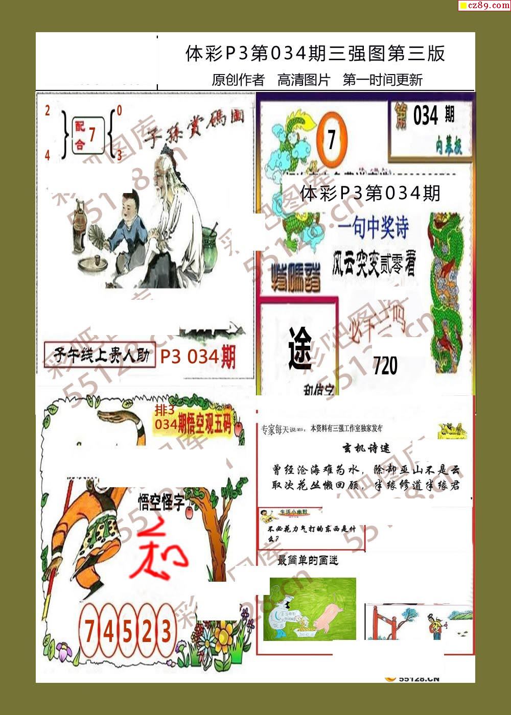 三强图系列034期体彩p3图谜