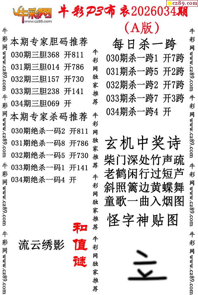 牛彩P3布衣26年034期AB版图谜(精华版)