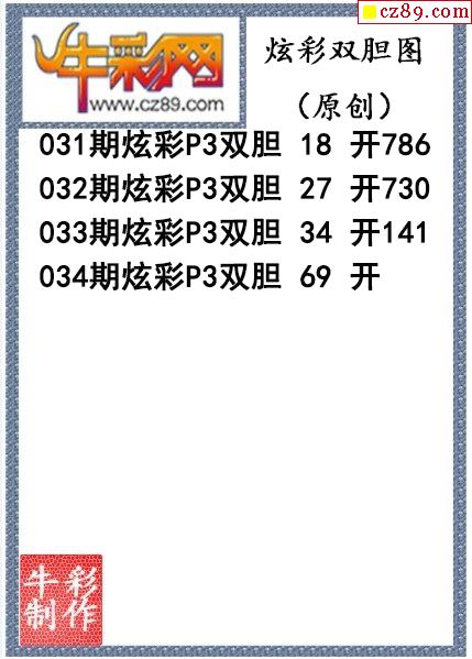 神彩飞扬三胆034期体彩P3图谜(原创)
