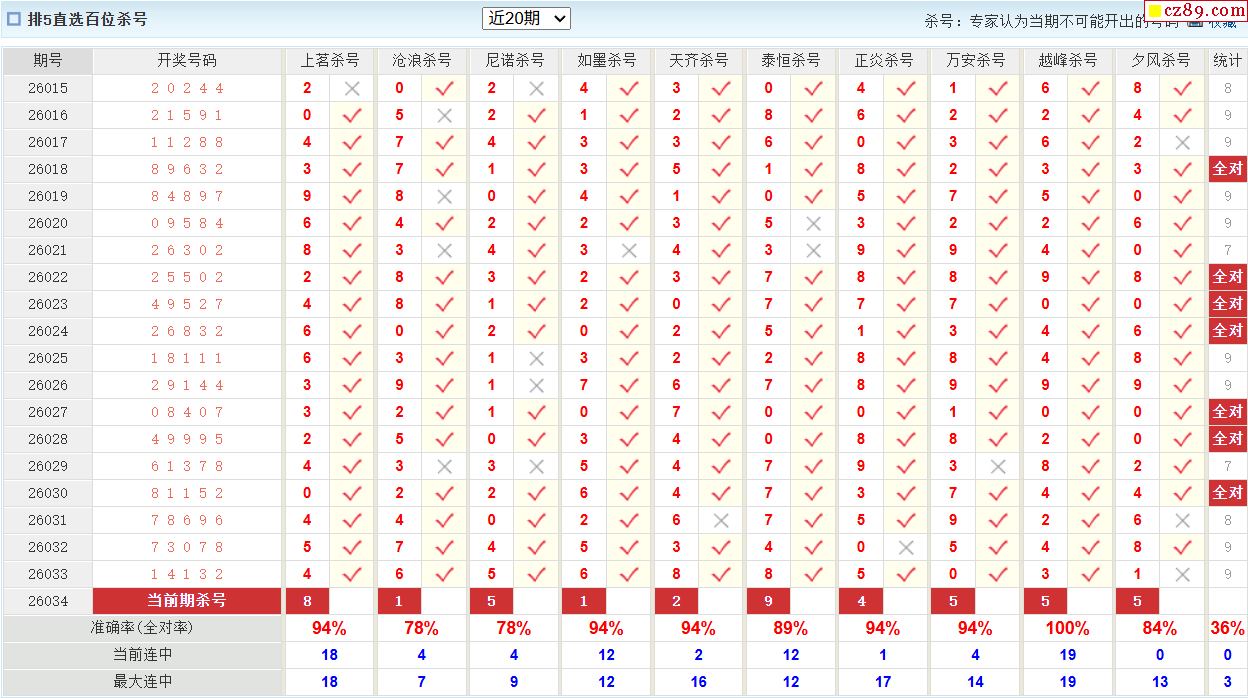 034期彩票专家体彩P5杀号推荐图表