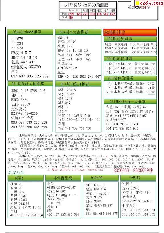 2026034期3d图迷汇总(三)