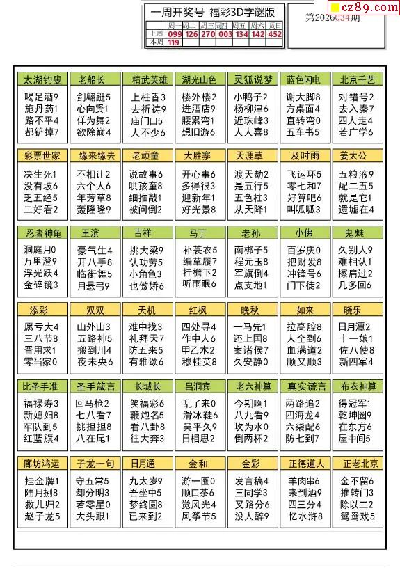 牛彩版3D字谜彩报图26年034期打印版