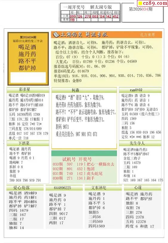 2026034期福彩3D图谜汇总