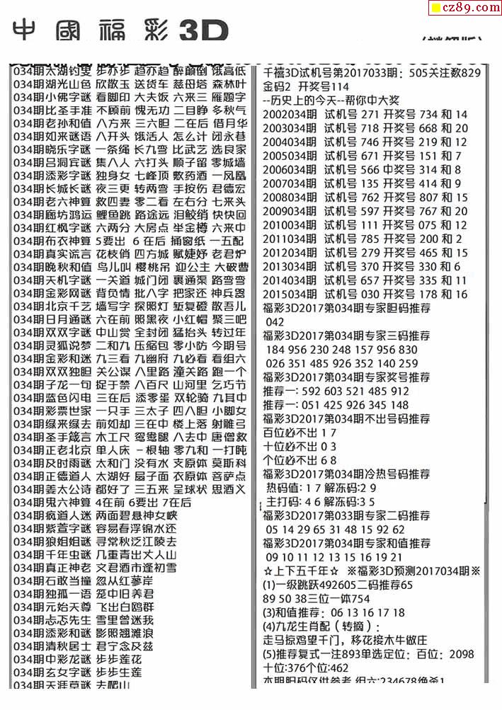 杀手+鑫马快报+字迷汇总26年034期3d图谜