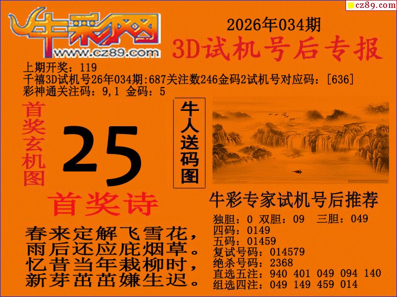 牛彩版3D预测彩报图26年034期打印版