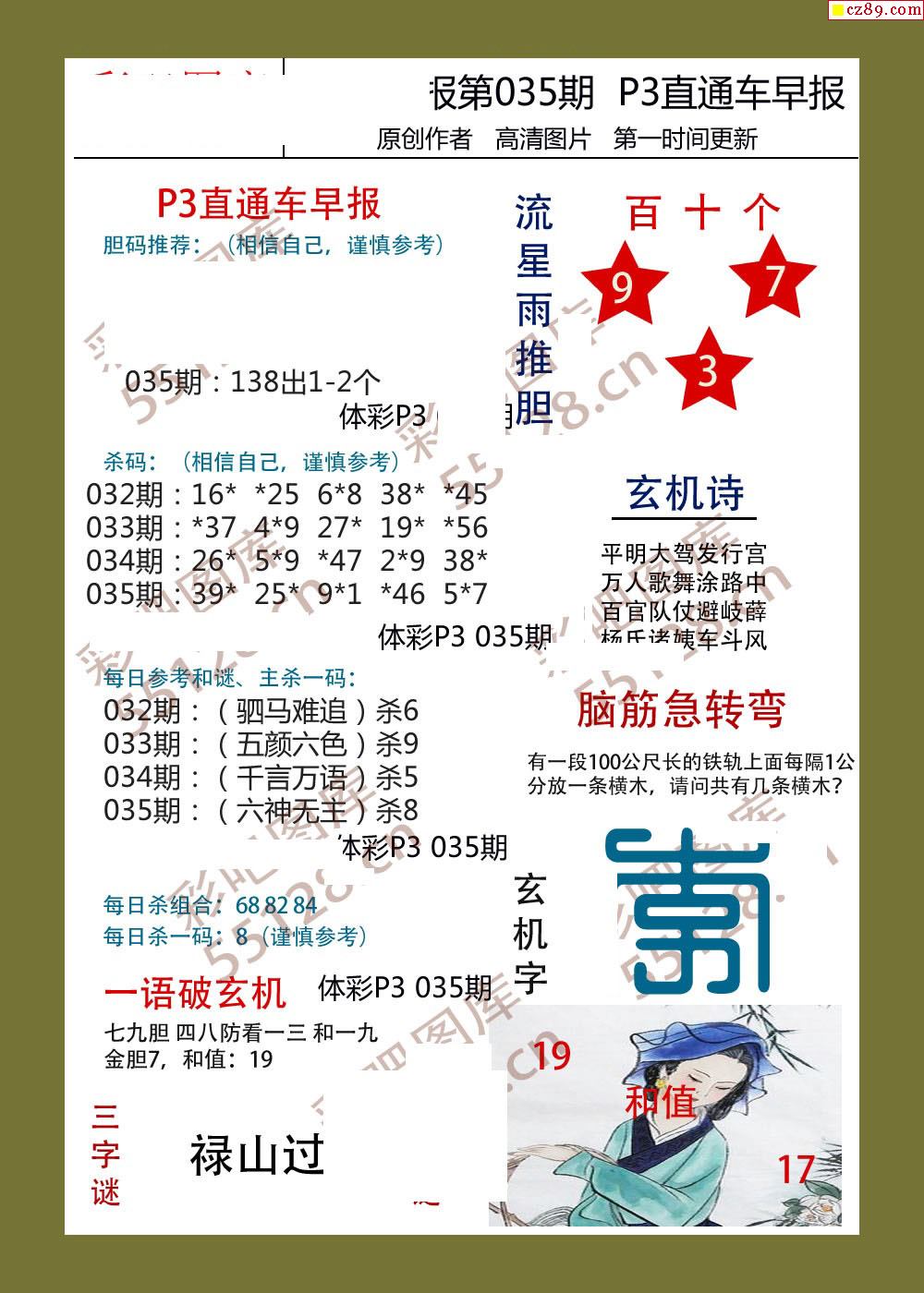 直通车早版035期体彩p3图谜