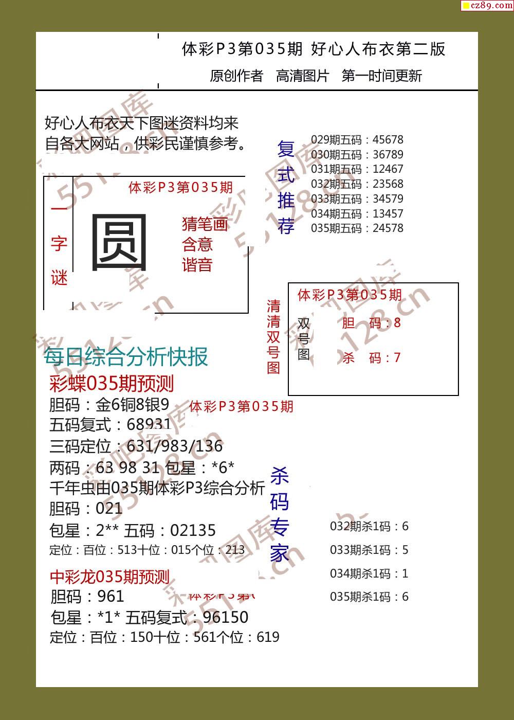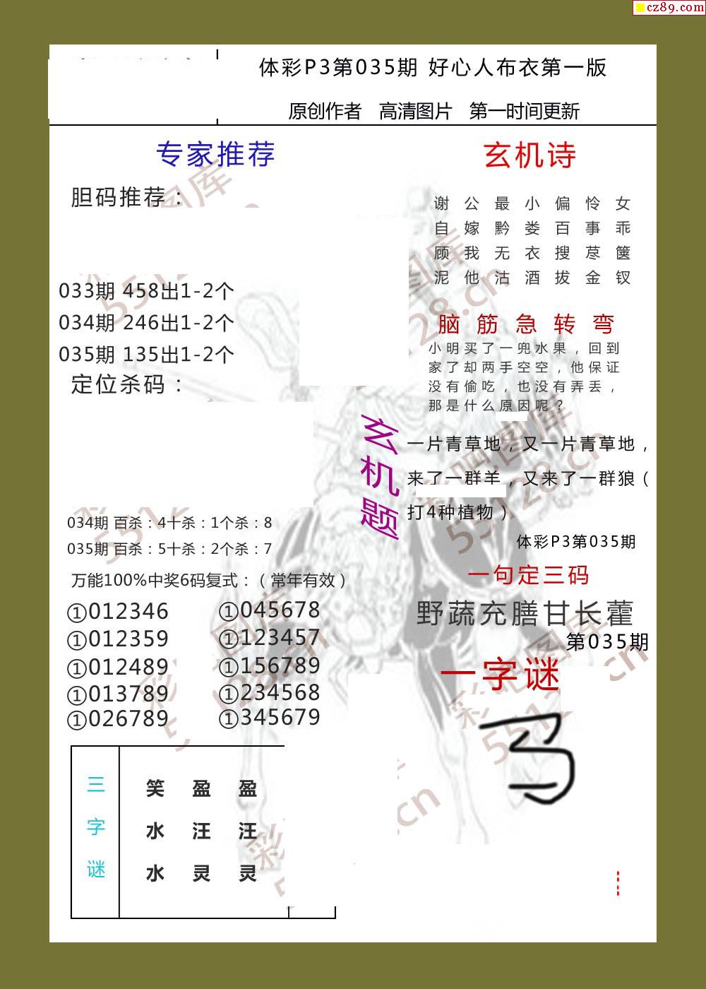 2026年035期牛彩网体彩P3画迷图谜汇总分享