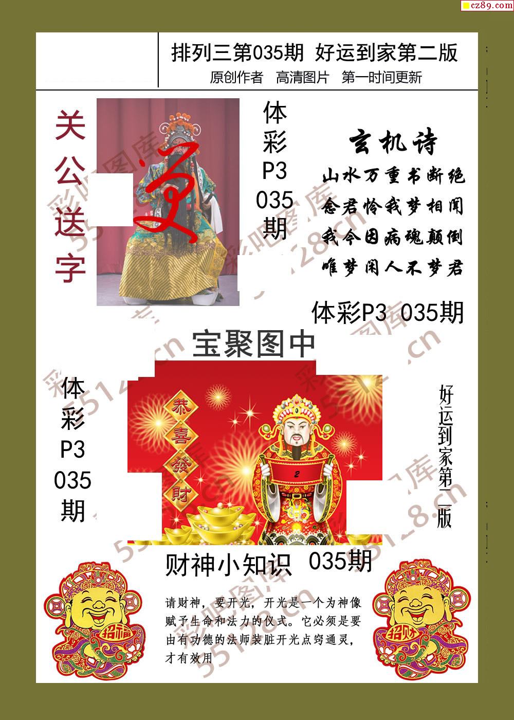 2026年035期牛彩网体彩P3画迷图谜汇总分享