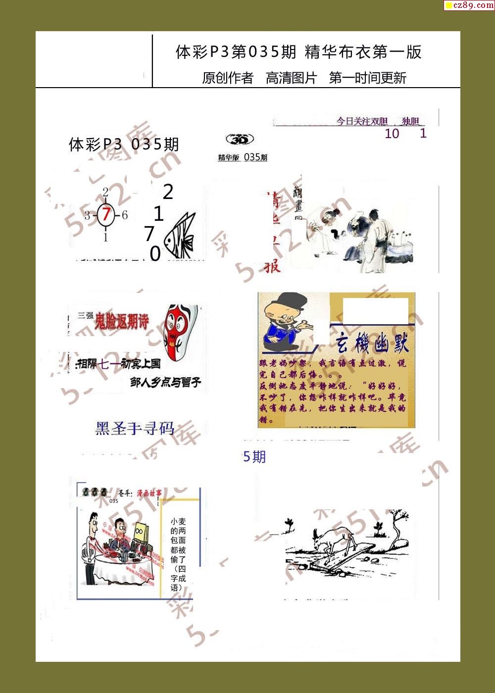 精华布衣彩报035期体彩p3图谜