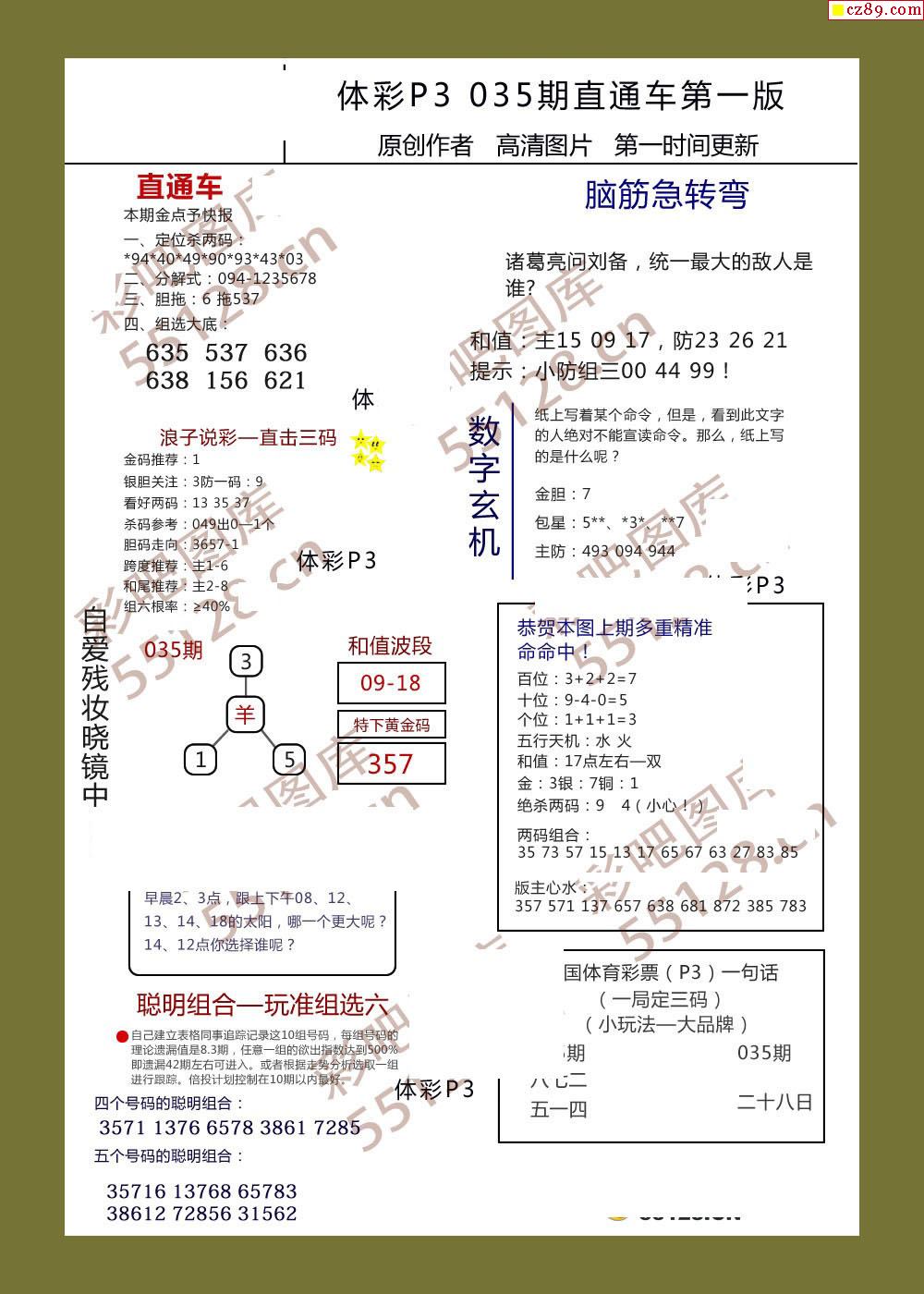直通车AB版035期体彩p3图谜
