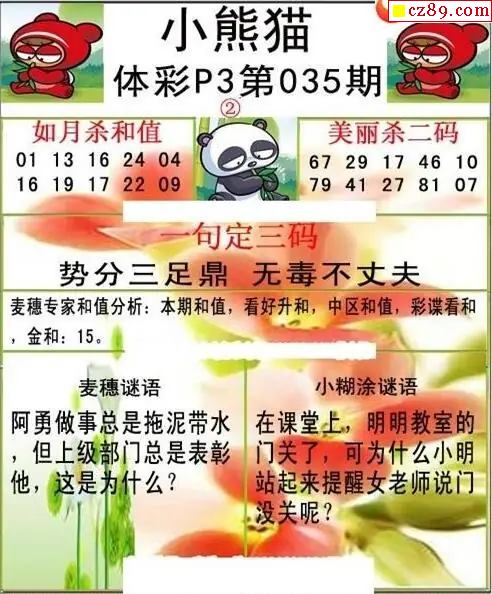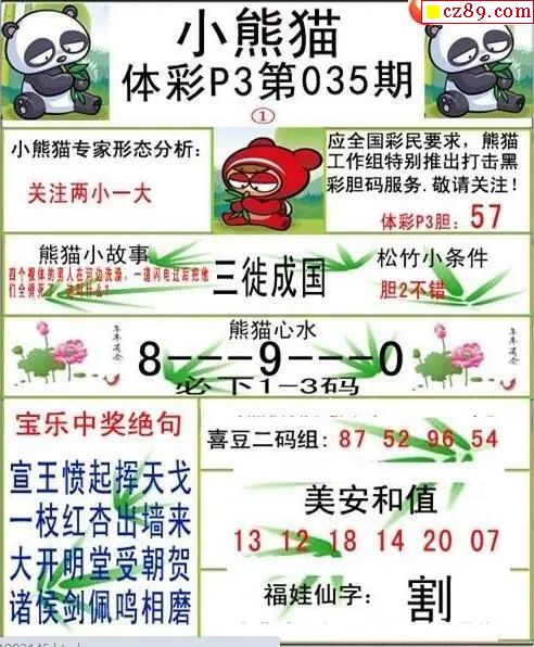 小熊猫2026035期体彩P3图谜