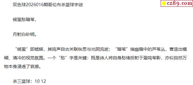 双色球字谜26年016期 鹏涛先生诗谜