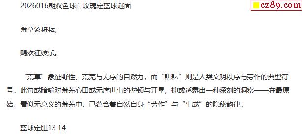 26年福彩双色球016期 白玫瑰定蓝球字谜