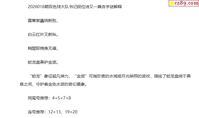 26年福彩双色球016期 左岸春风一语断蓝另版