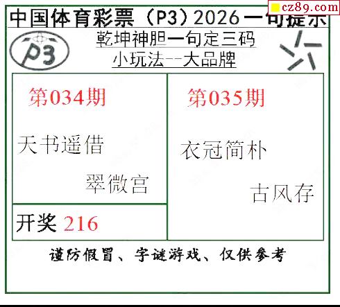 乾坤一句定三码26年035期P3图谜