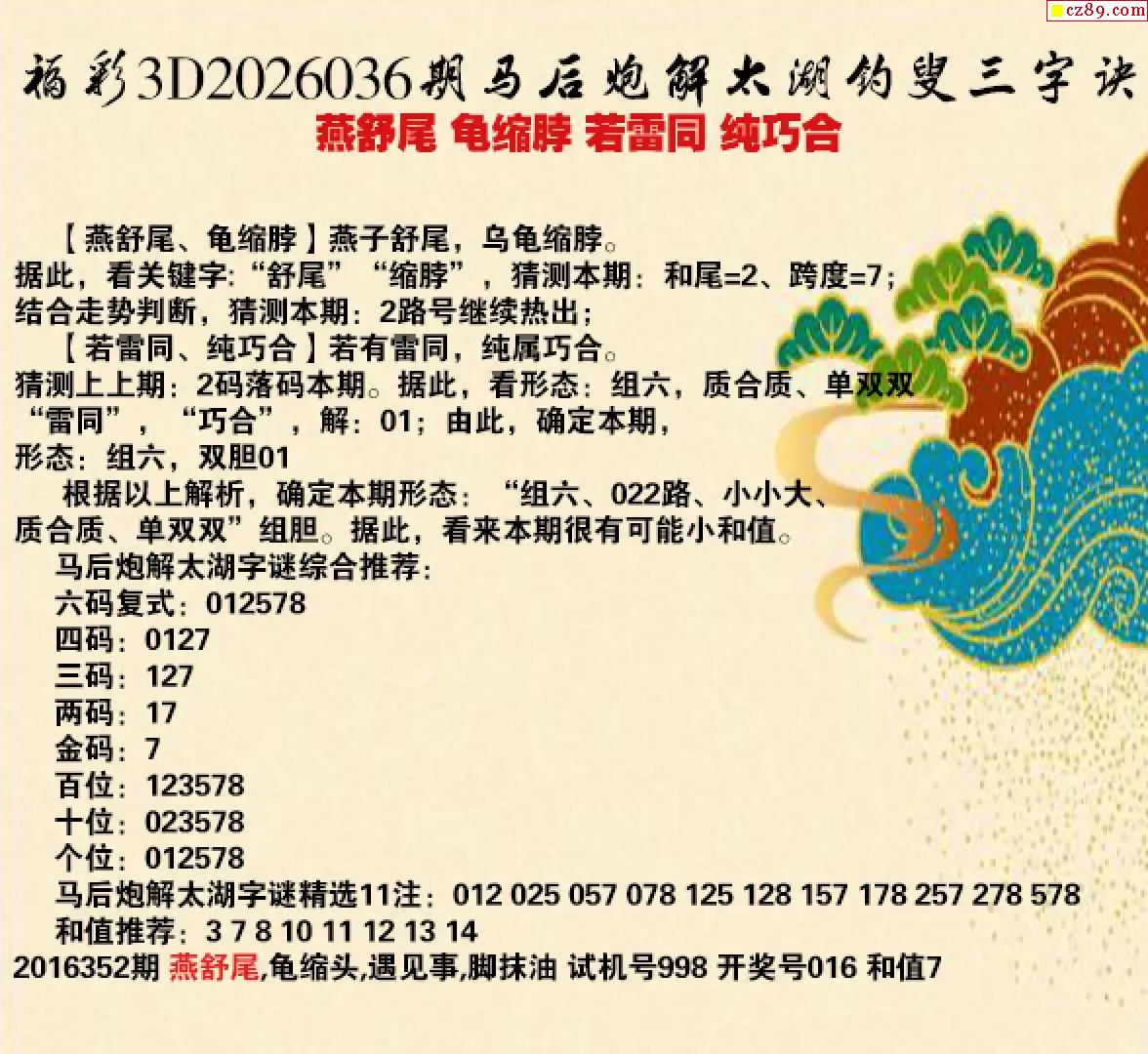 马后炮解26年036期3d太湖钓叟之 纯巧合