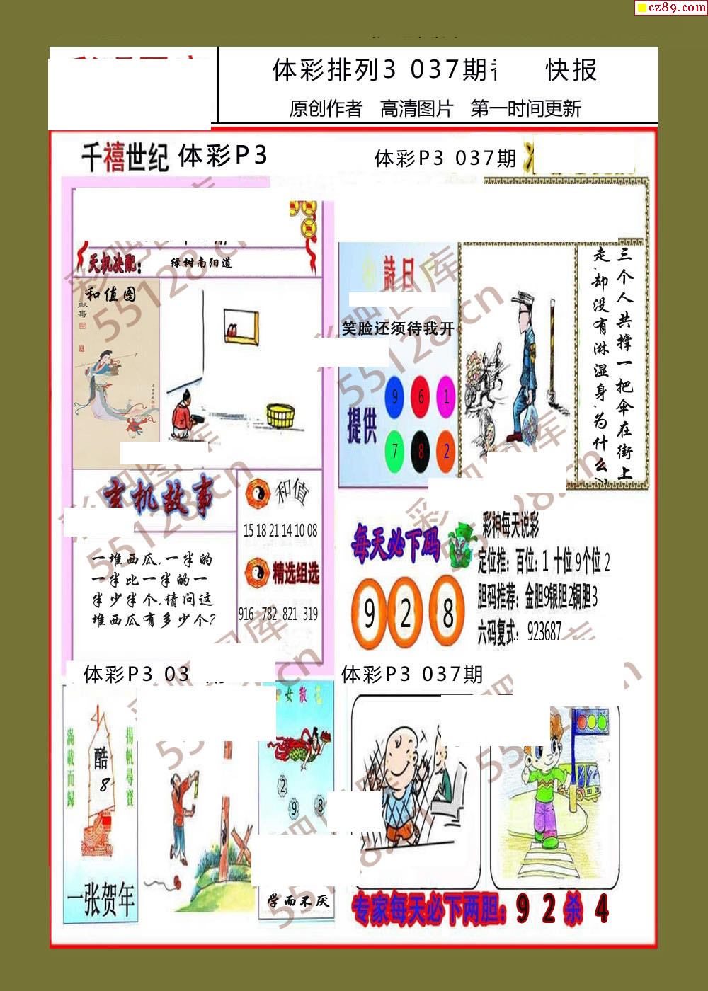 香岛快报037期体彩p3图谜