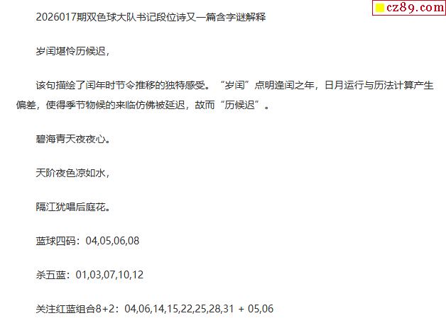 26年福彩双色球017期 大队书记段位诗另一篇