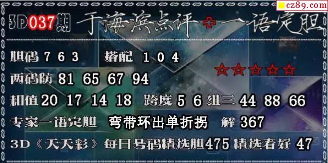 3D 《天天彩》每日号码精选胆475精选看好47