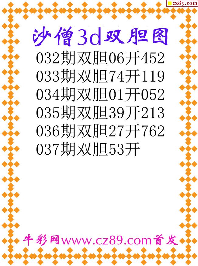 沙僧双胆26037期3d原创图谜