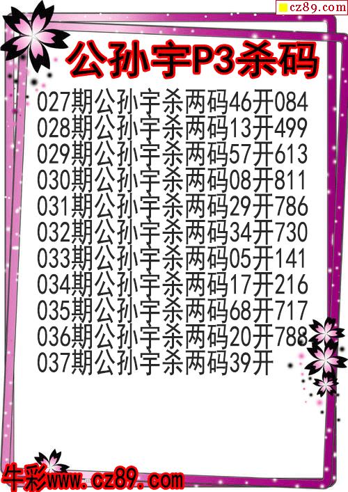 26年037期公孙宇P3杀码图
