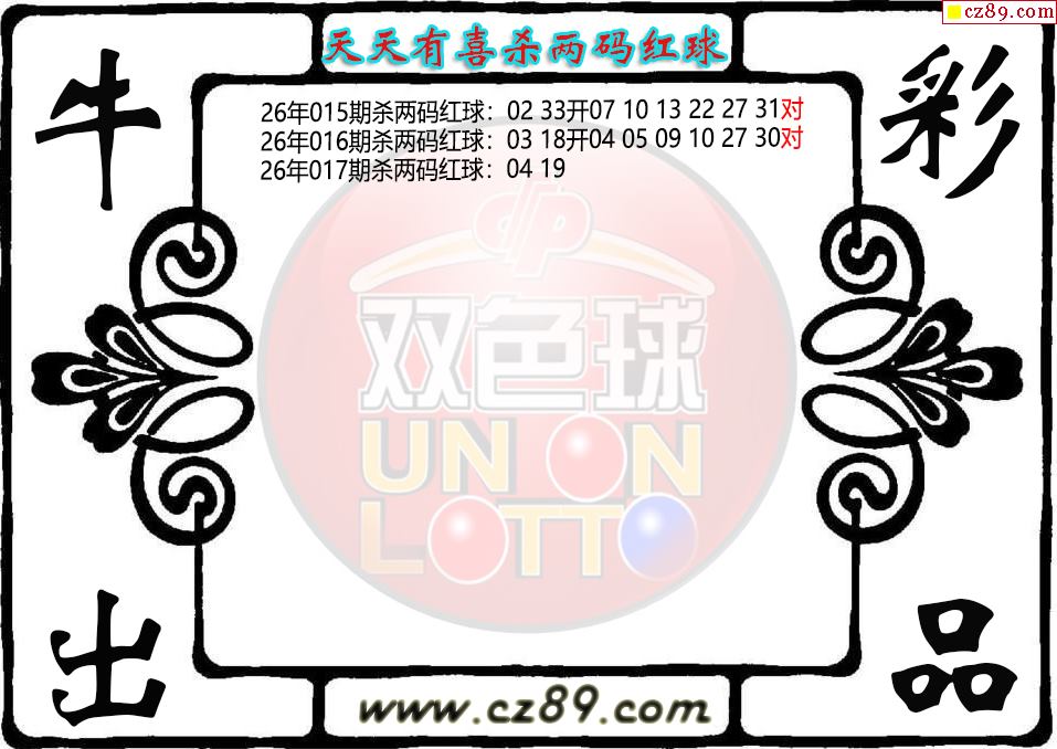 双色球017期 天天有喜杀两码红球图迷