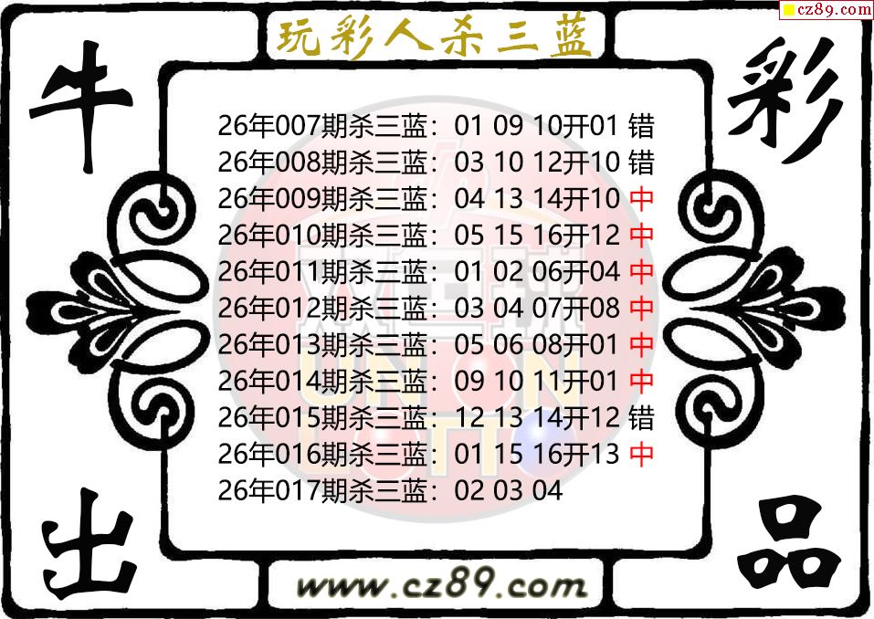 双色球017期 玩彩人杀三蓝图谜 10中7