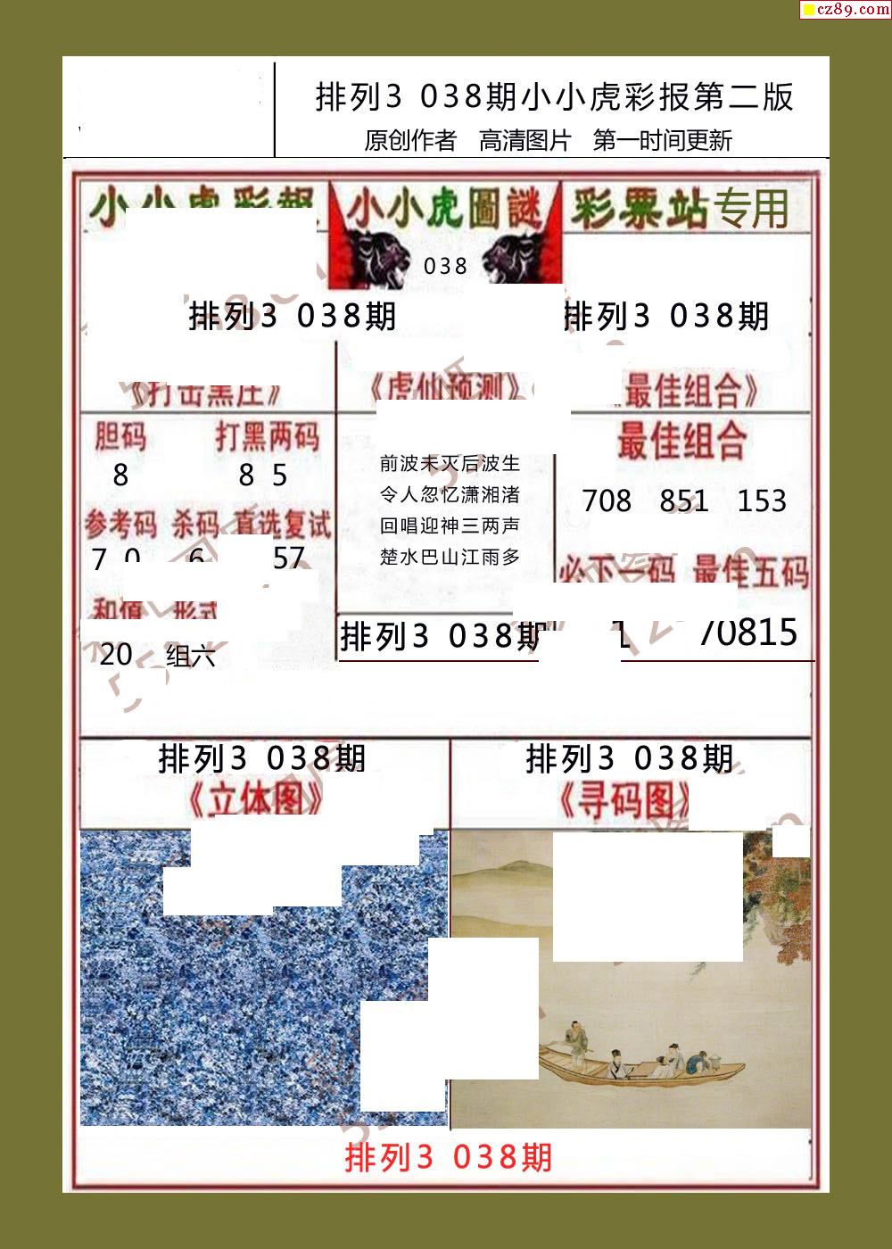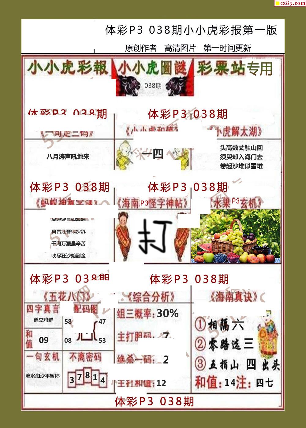 小小虎彩报038期体彩p3图谜