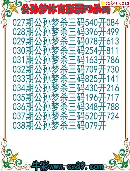 26年038期公孙梦体育彩票P3杀码图