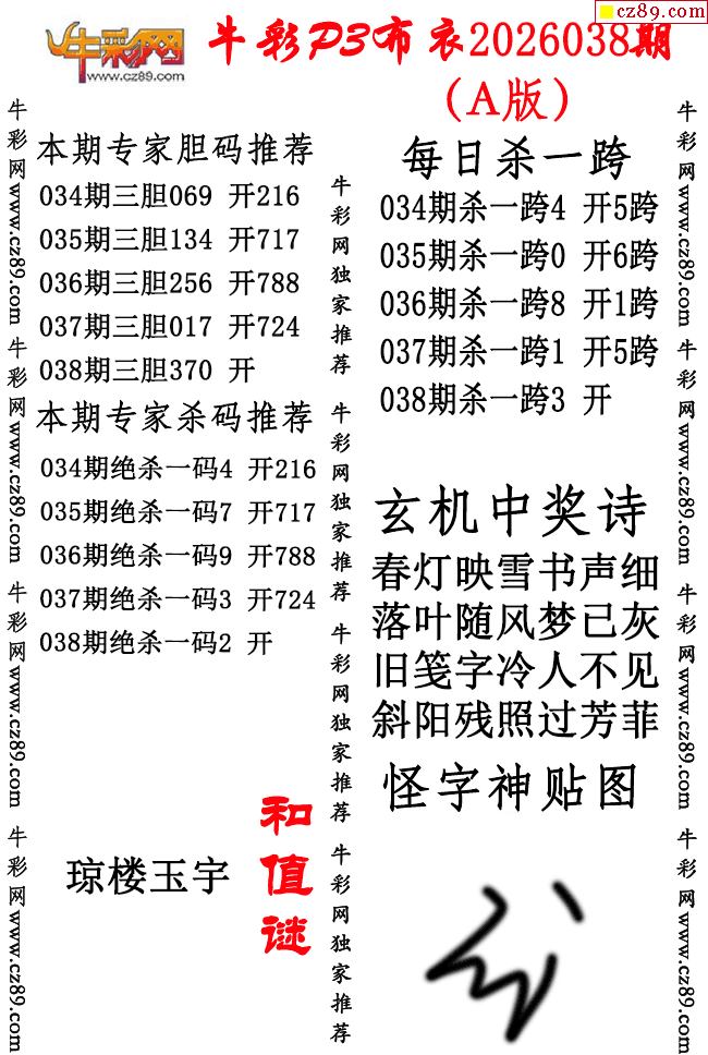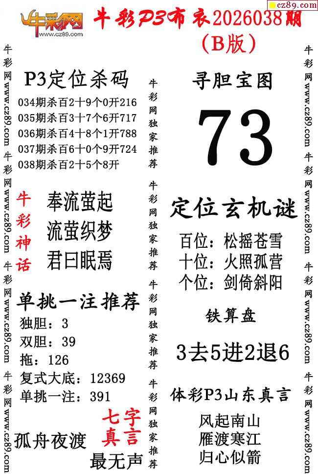 牛彩P3布衣26年038期AB版图谜(精华版)
