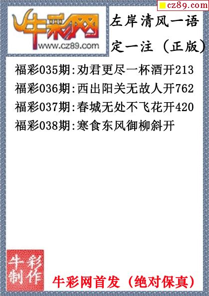 2026年038期七绝圣手3d和尾字谜【牛彩网...