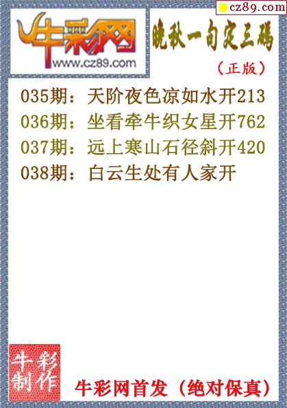2026年038期七绝圣手3d和尾字谜【牛彩网...